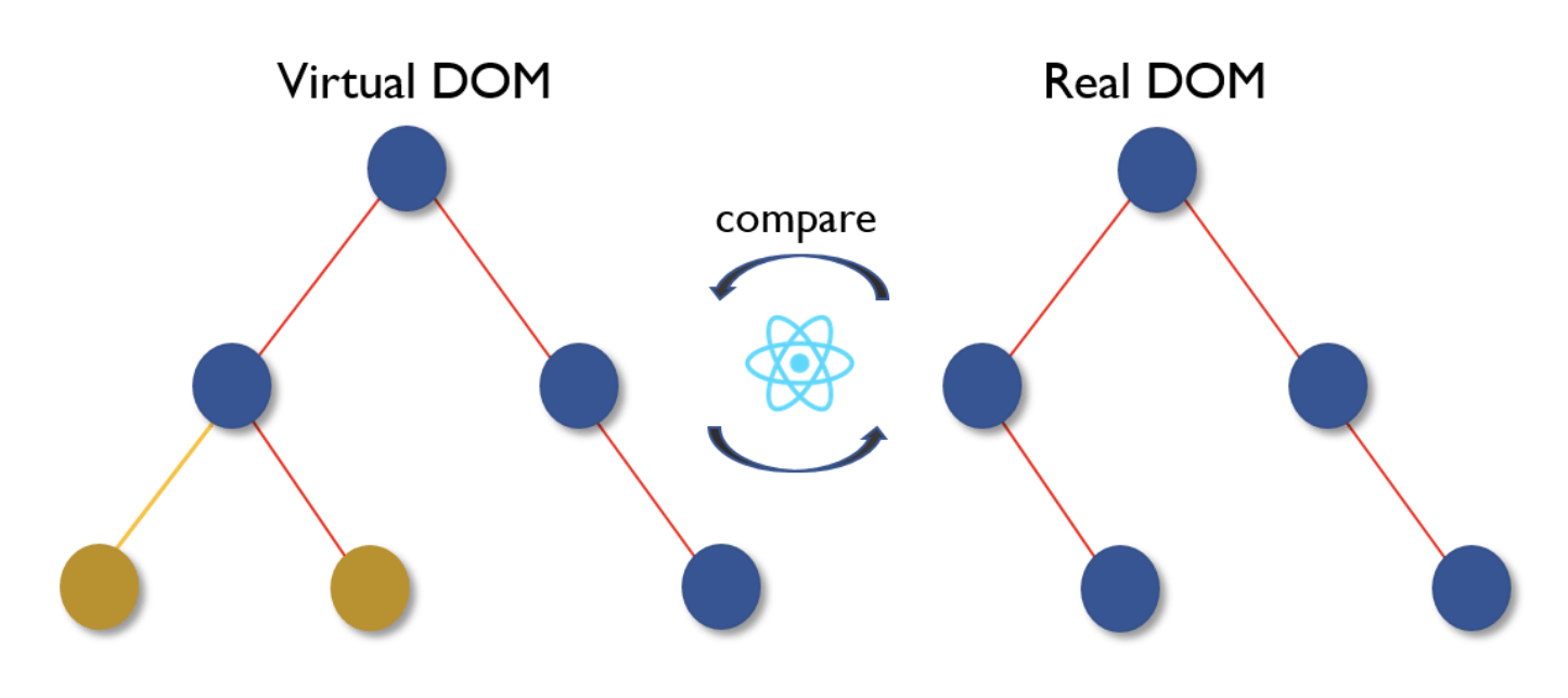 React then isolates the changes between old and new instances of the Virtual DOM and then only updates the actual DOM with the necessary changes as opposed to re-rendering an entire view altogether which is significantly more efficient. This process is called "diffing".