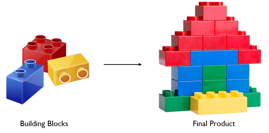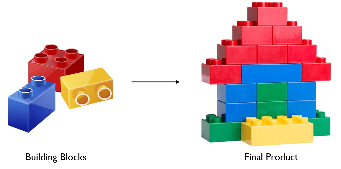 Think of a component as a single lego block. These blocks/components are integrated together to build a bigger and more dynamic application.